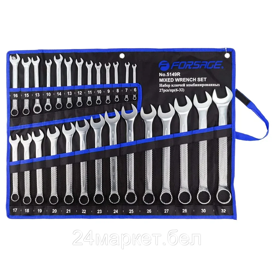FORSAGE Набор ключей комбинированных 27пр.(6-28,30,32мм+ключи трещоточные 10,13мм) на полотне Forsage F-5149R