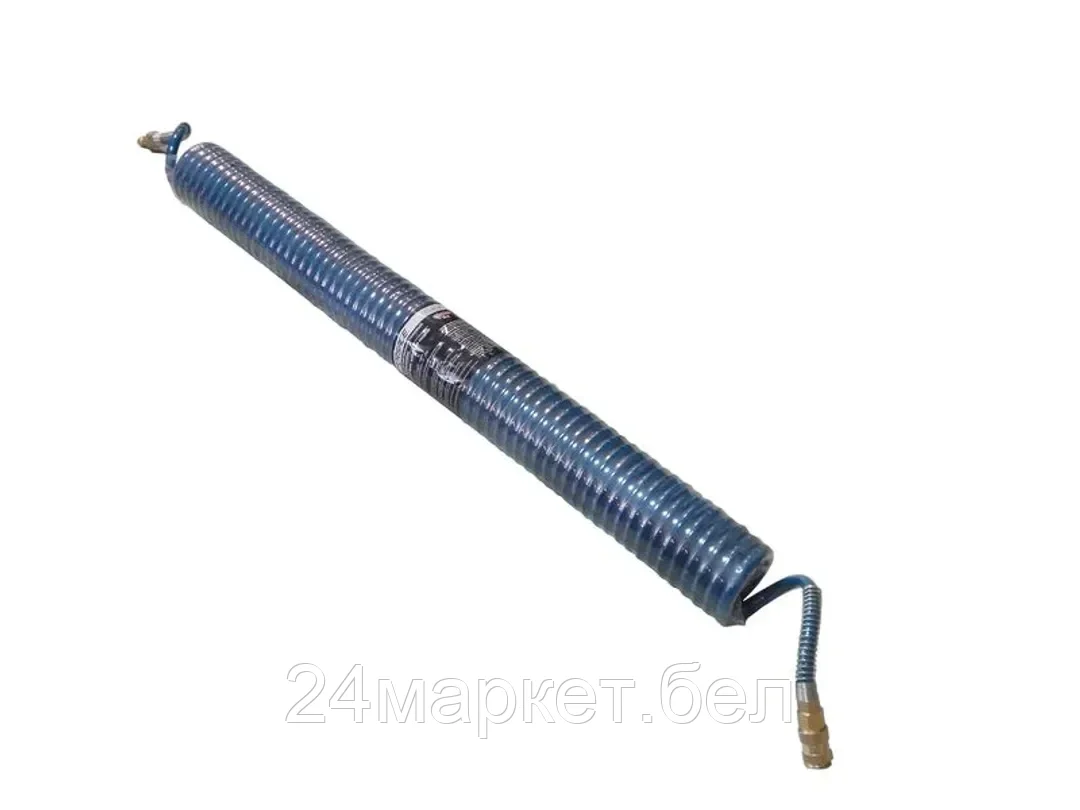 Шланг пневматический витой полиуретановый применяется для подачи воздуха от компрессора к пневматическому инструменту. Изготовлен из полиуретана, отличается прочностью и удобством эксплуатации. Спиральное исполнение шланга предотвращает его перегибы. Шланг оснащён штуцером рапид мама с одной стороны и рапид папа с другой. Технические характеристики: Внутренний диаметр : 8 мм; Наружный диаметр : 12 мм; Длина шланга : 10 метров; Максимальное давление : 15Бар; Рабочая температура : от -20 до +60 °.