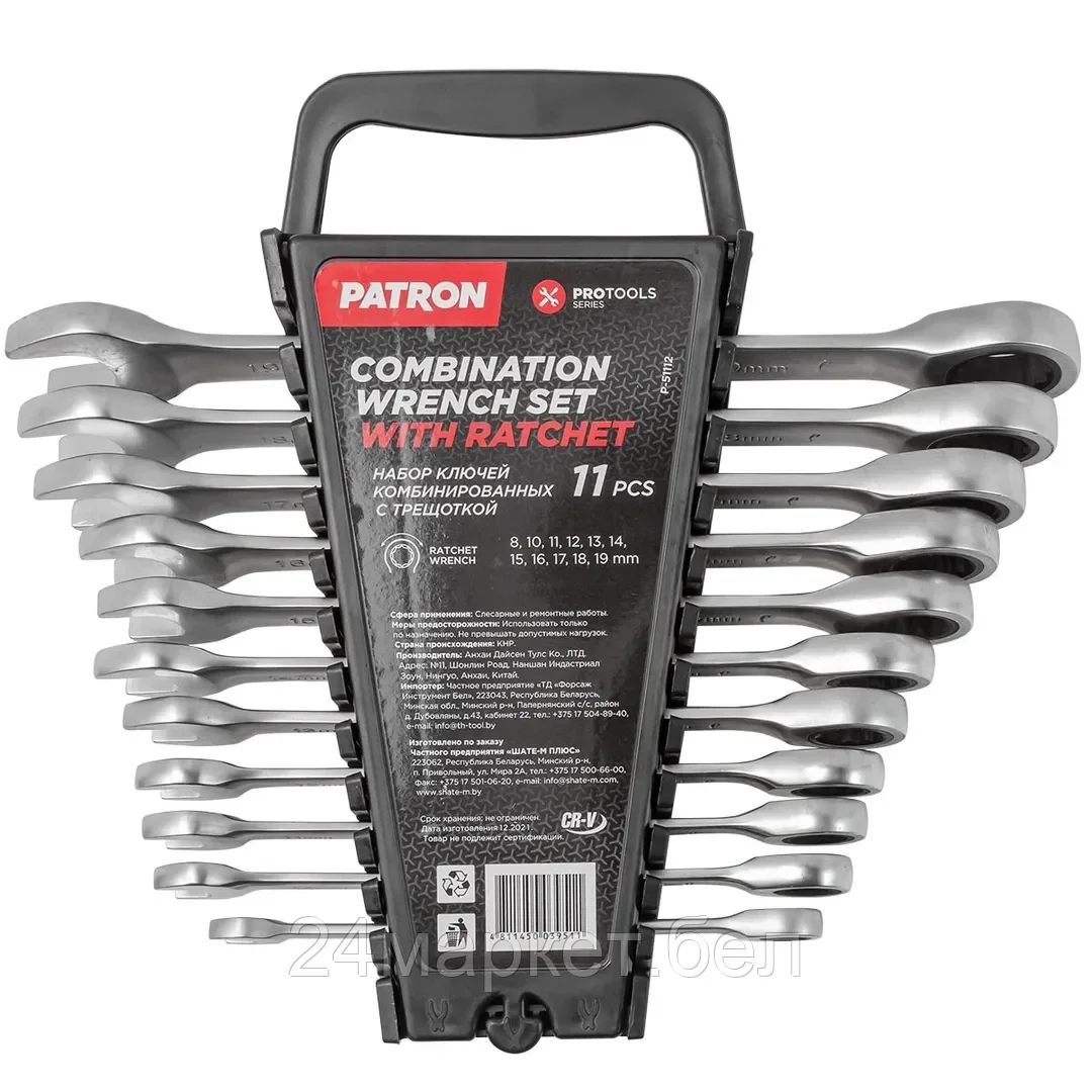 Patron Набор ключей комбинированных трещоточных 11пр (8,10,11,12,13,14,15,16,17,18,19мм), в пластиковом держателе PATRON P-51112