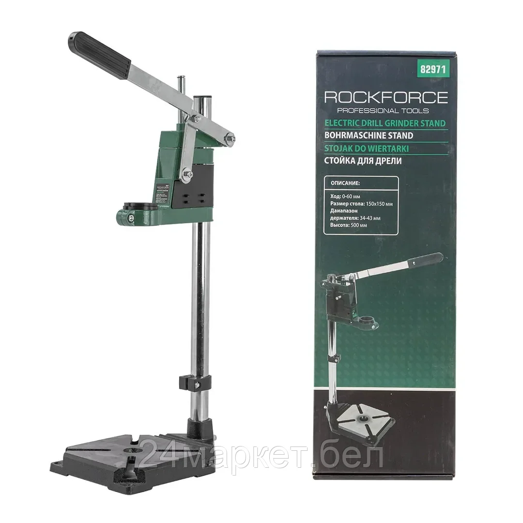 Стойка для дрели (высота: 500мм, ход: 0-60мм, размер стола: 150х150мм,диапазон держателя: 34-43мм) Rock FORCE RF-82971