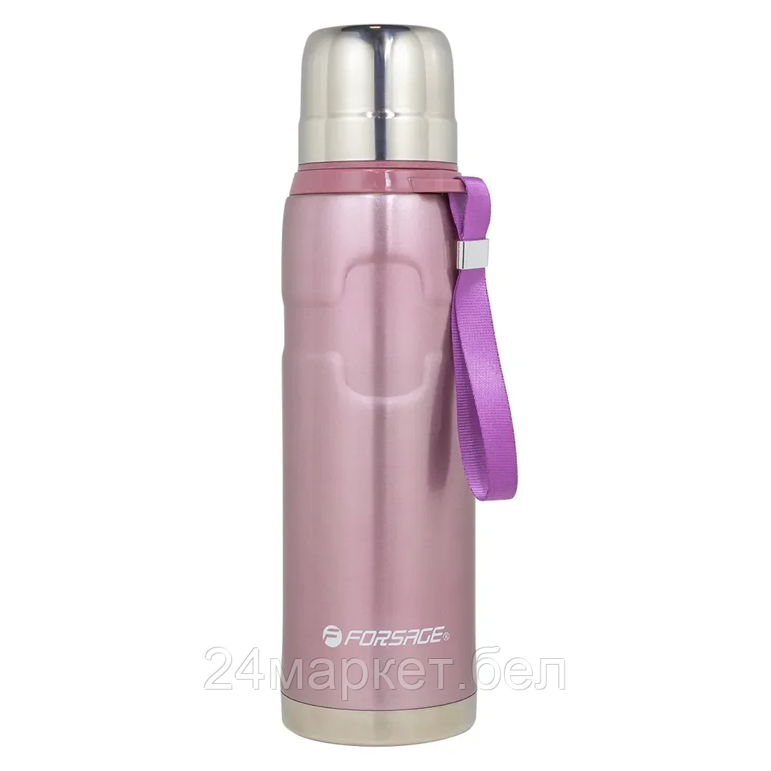 Термос для напитков 750мл(нерж.сталь,пробка с термоизолятором,крышка-кружка,горячее-до18ч,холодное-до 24ч,розовый) Forsage F-750P