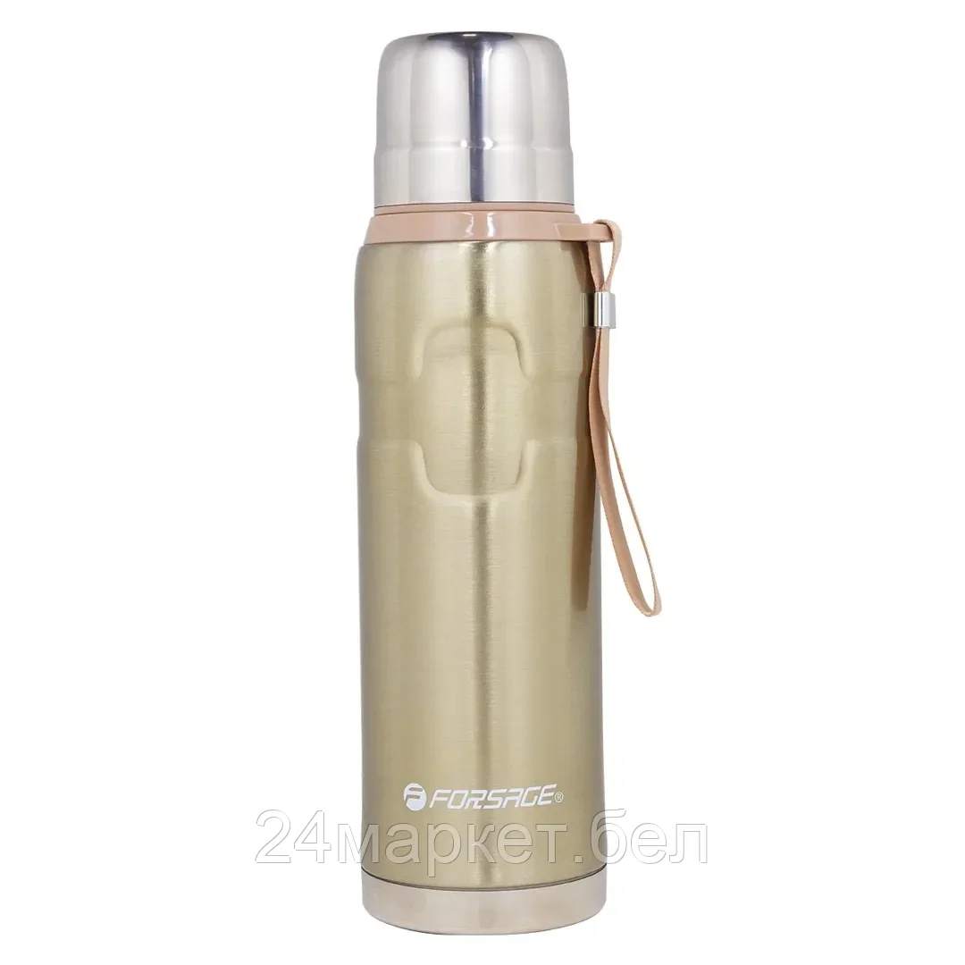 Термос для напитков 750мл(нерж.сталь,пробка с термоизолятором,крышка-кружка,горячее-до18ч,холодное-до 24ч,золотистый) Forsage F-750G
