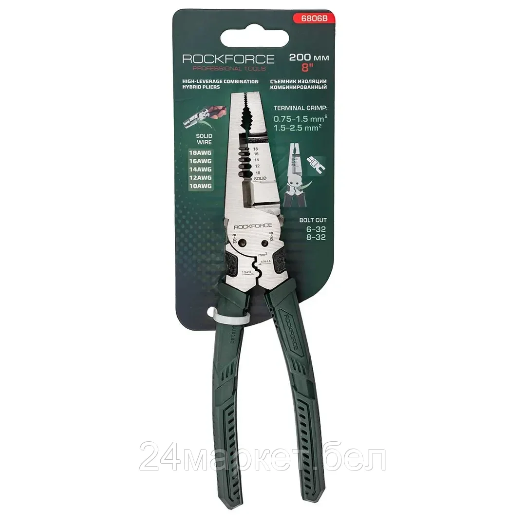 Сьёмник изоляции 200мм с эргономичными рукоятками могут использоваться для работы с проводами, кабелями и.т.д. Съёмник имеет удобные прорезиненные рукоятки, которые обеспечивают комфортный захват и предотвращают скольжение во время работы.Сьёмник предназначен для сьема изоляции сечения проводов диаметров 1-1,3-1,6-2-2,6мм (18-16-14-12-10AWG). Для этого в сьемнике предусмотрены специальные ложбины для провода, которые обеспечивают удобство работы. также обладает функцией зажима клемм 0,75-1,5мм? и 1,5-2,5мм? и специальными отверстиями для перекусывания гвоздей, проволоки и т.д. Кроме этого, благодаря рифлению на внутренней поверхности сьемник может использоваться в качестве плоскогубцев для захвата, манипулирования, удержания и поворота различных объектов и материалов.