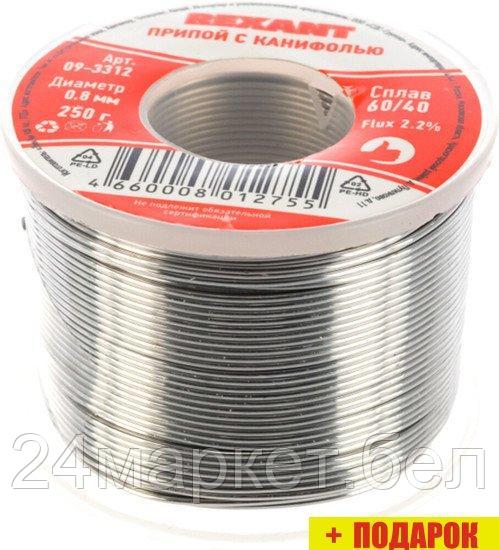 состав припоя: олово (60%), свинец (40%), температура плавления 183-188 °C, ширина/диаметр 0.8 мм, вес 0.25 кг