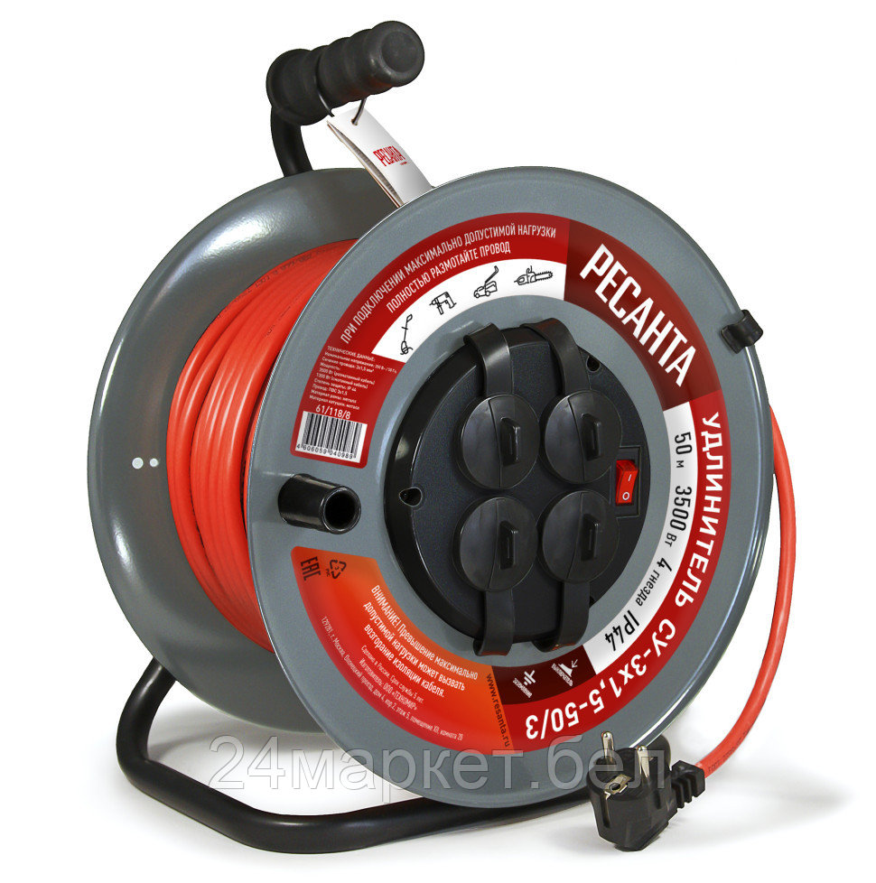 удлинитель, кабель 50 м, 4 розетки / 3500 Вт
