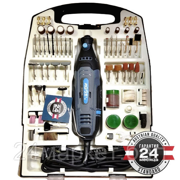 Гравировальная шлифмашина ROGEL, 150 Вт, 10000-30000 об/мин, гибкий вал, 234 предмета (MGR-234)