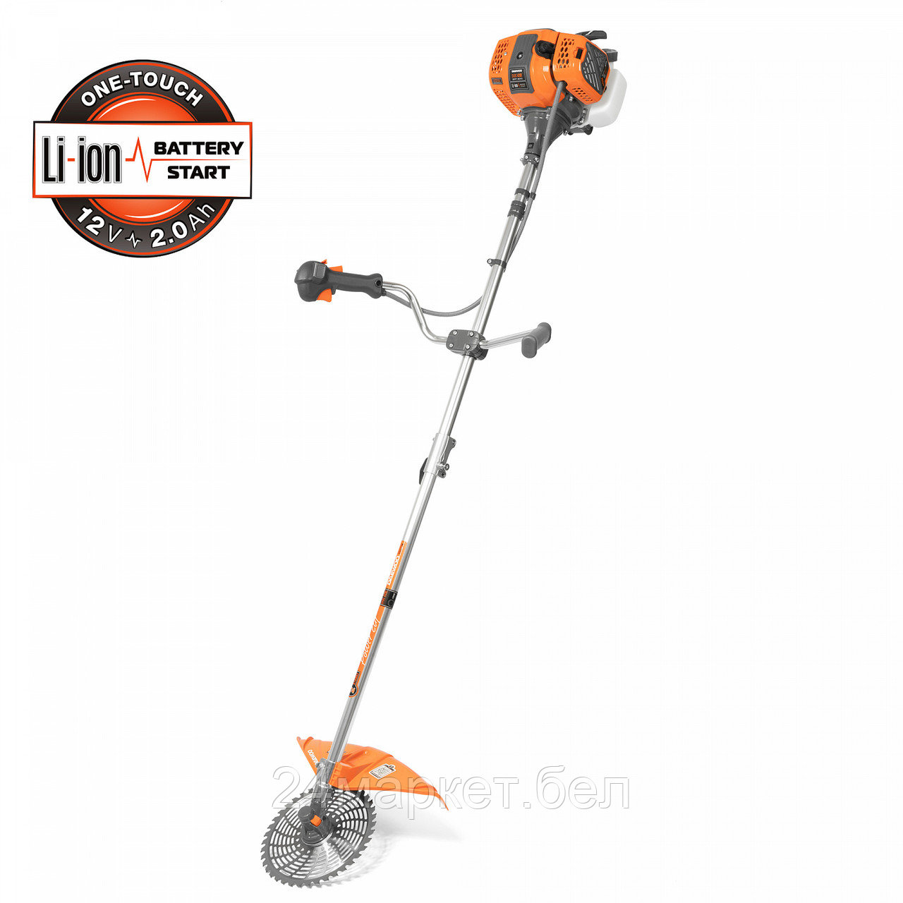 бензиновый, двухтактный, 1500 Вт, оснастка: леска+металлический диск, ширина скашивания: 25.5-42 см, легкий пуск, 9.2 кг