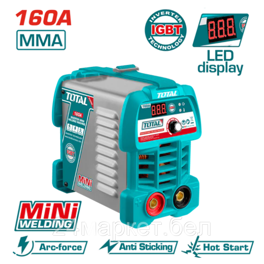 ручная дуговая сварка (MMA), входное напряжение 220–240 В, сварочный ток: 15–160 А, диаметр электрода: 1.6–3.2 мм