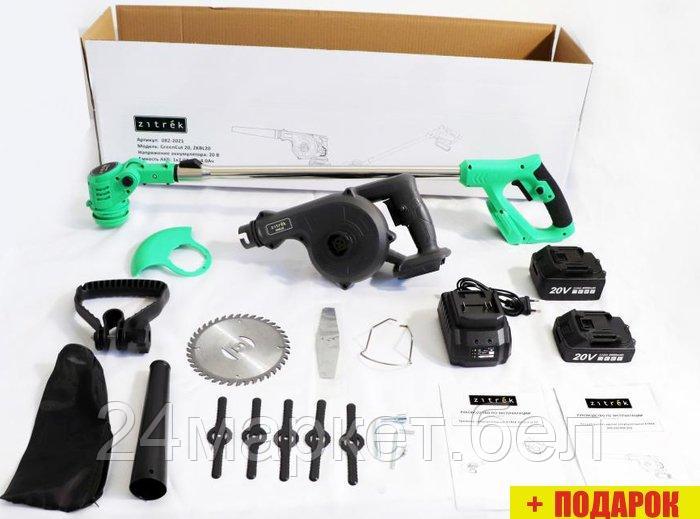 | Комплектация | Триммер GreenCut 20:###BR###Триммер - 1 шт.###BR###Режущий диск - 1 шт.###BR###Пластиковые ножи - 5 шт.###BR###Металлический нож - 1 шт.###BR###Защитный кожух - 1 шт.###BR###Металлическая скоба - 1 шт.###BR###Дополнительная рукоятка - 1 шт.###BR###Шестигранный ключ - 1 шт.###BR###Ключ торцовочный - 1 шт.###BR###Винт - 1 шт###BR###Руководство по эксплуатации - 1 шт.###BR######BR###Воздуходувка ZKBL20:###BR###Воздуходувка - 1 шт.###BR###Насадка-труба - 1 шт.###BR###Мешок для сбора пыли - 1 шт.###BR###Руководство по эксплуатации - 1 шт.###BR######BR###Аккумулятор 2,0 Ач - 1 шт.###BR###Аккумулятор 4,0 Ач - 1 шт.###BR###Зарядное устройство - 1 шт. |