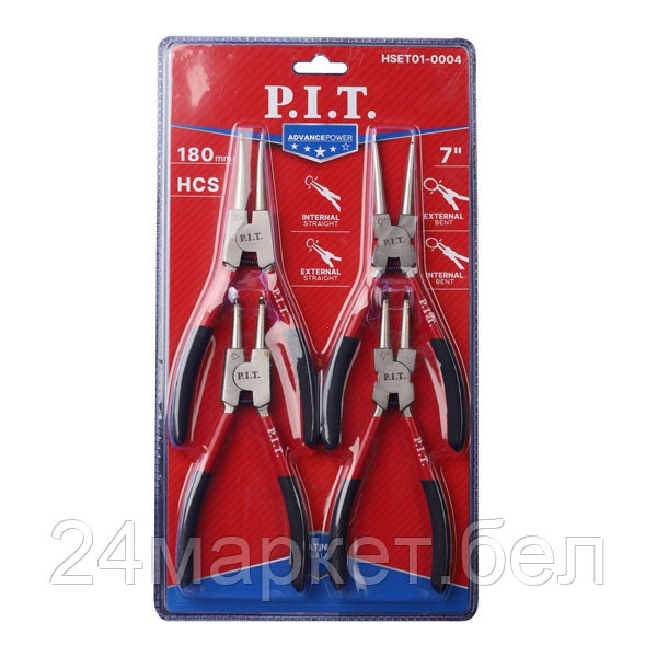Набор съёмников стопорных колец P.I.T. ADVANCE HSET01-0004,180 мм, 4 шт, разжимная пружина