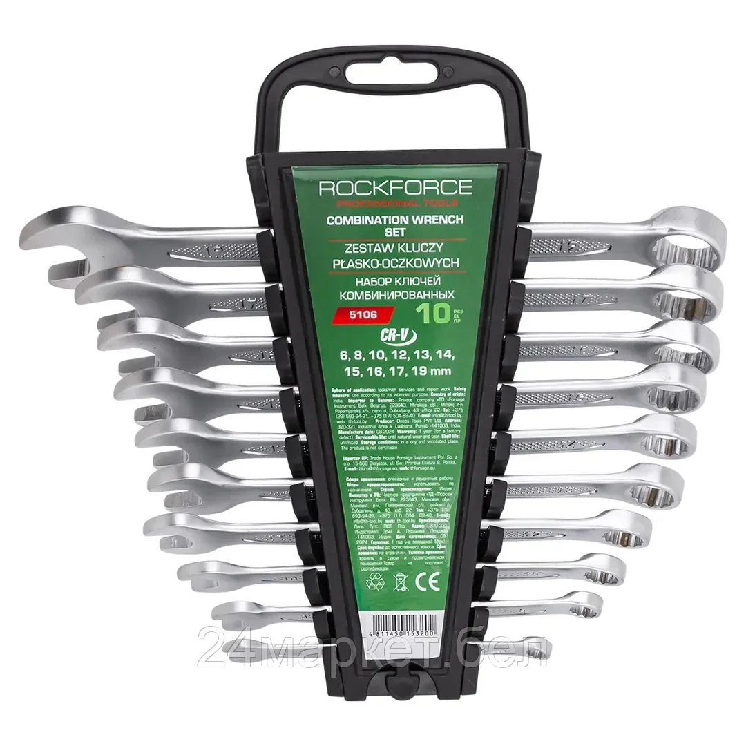 RF-5106 RockFORCE Набор ключей комбинированных 10пр. (6, 8, 10, 12-17, 19мм) на пластиковом держателе