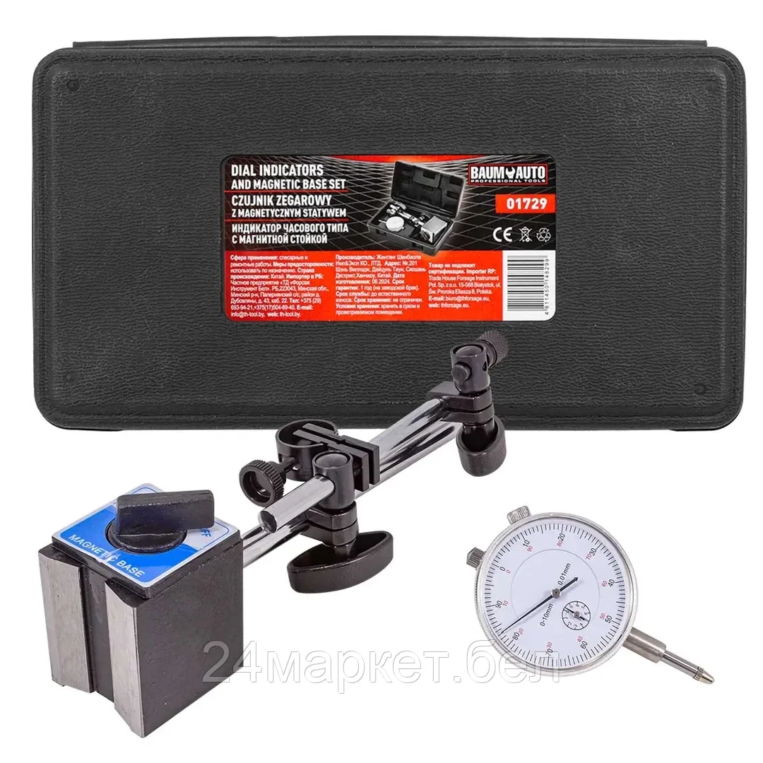 BM-01729 Baum Auto Индикатор часового типа с магнитной стойкой (0-10мм, погрешность-0,01мм), в пласт.кейсе