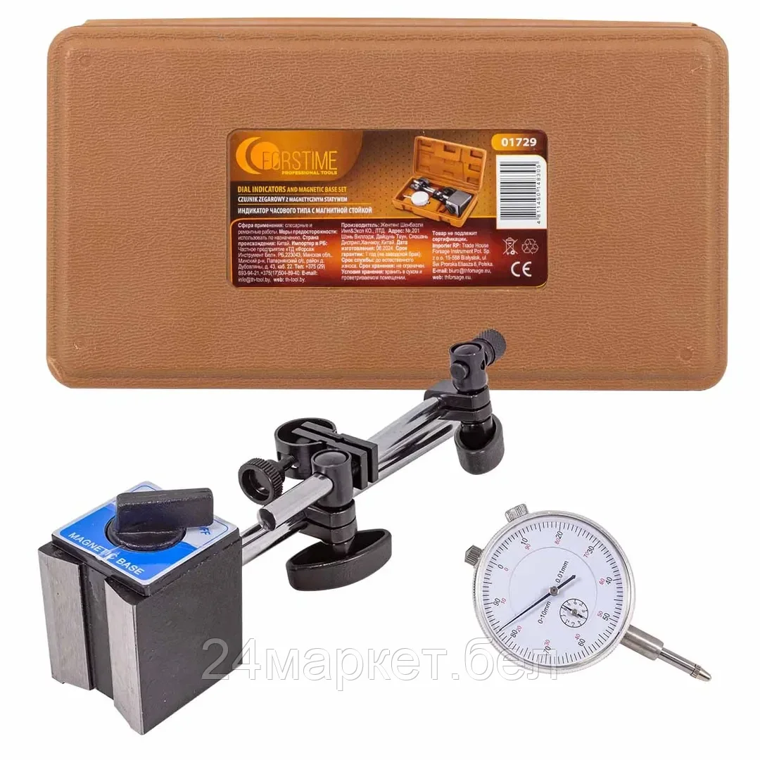 FT-01729 FORSTIME Индикатор часового типа с магнитной стойкой (0-10мм, погрешность-0,01мм), в пласт.кейсе