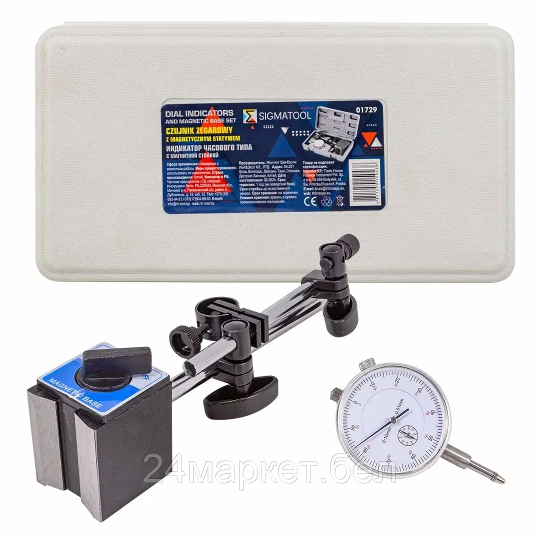 Sigmatool-01729 SIGMATOOL Индикатор часового типа с магнитной стойкой (0-10мм, погрешность-0,01мм), в пласт.кейсе