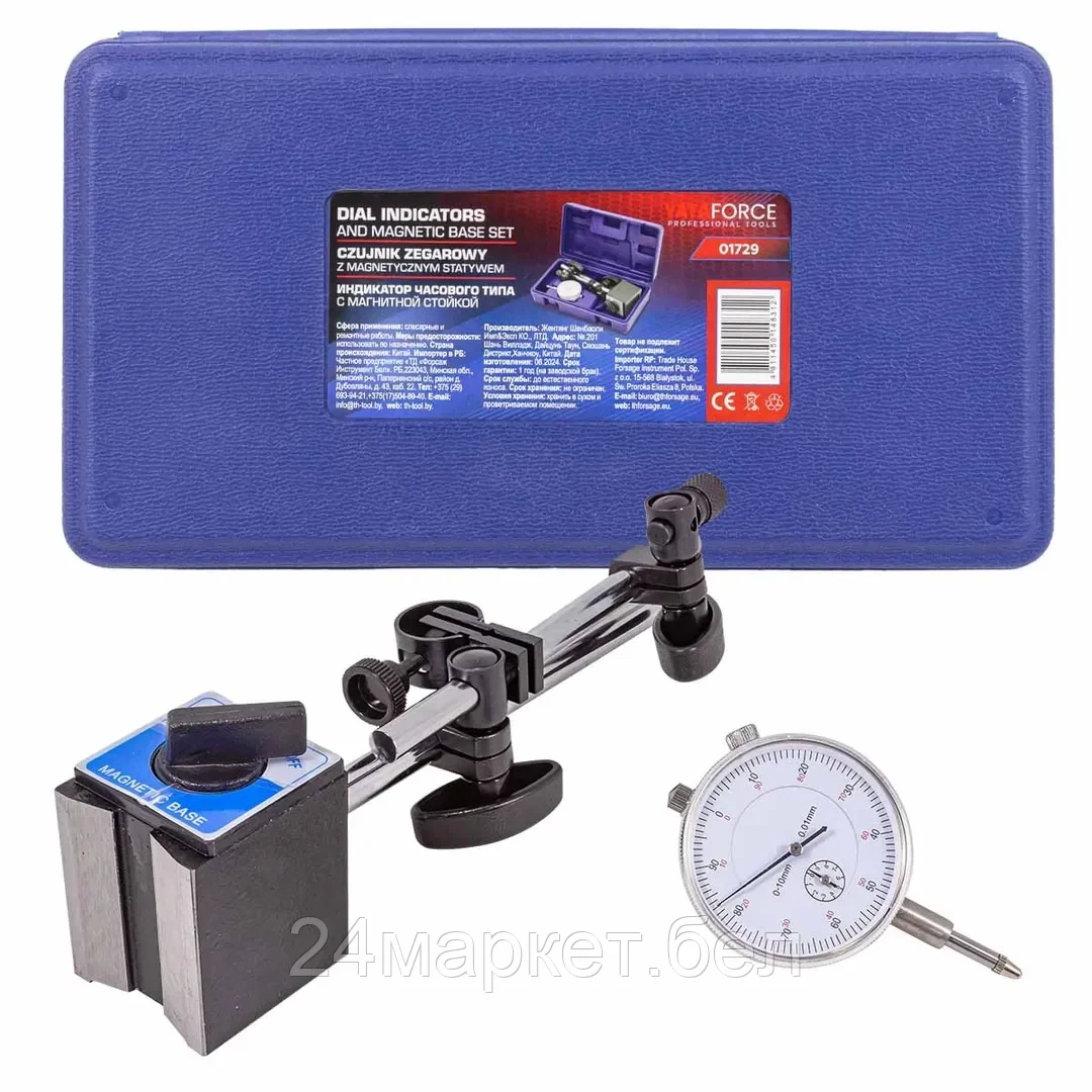 YF-01729 YATAFORCE Индикатор часового типа с магнитной стойкой (0-10мм, погрешность-0,01мм), в пласт.кейсе